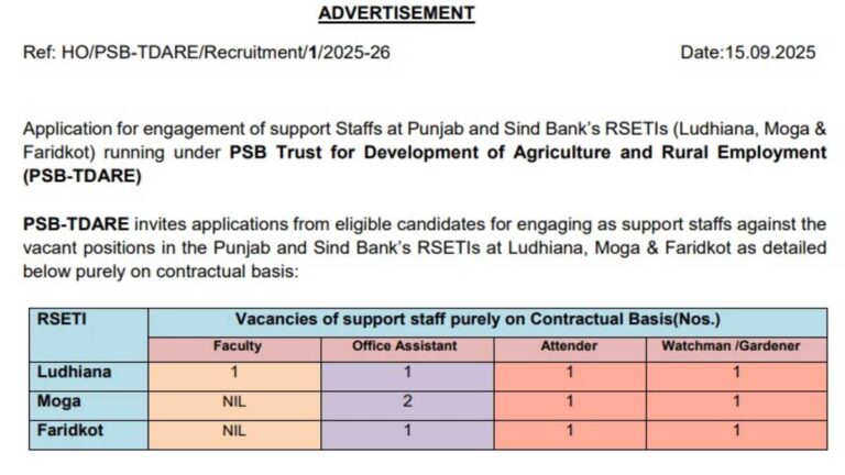 Punjab and sind Bank पंजाब एंड सिंध बैंक सहायक कर्मचारी भर्ती, 11 फैकल्टी, ऑफिस असिस्टेंट और अन्य पदों के लिए …